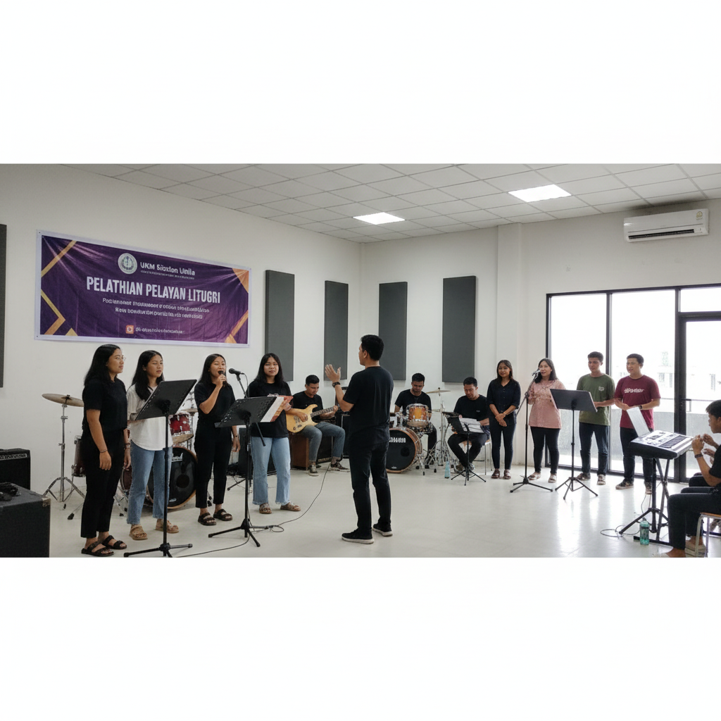 Pelatihan ini ditujukan bagi mahasiswa yang terlibat dalam pelayanan liturgi seperti worship leader, singer, pemain musik, hingga usher. Peserta mendapatkan materi terkait teknik pelayanan, etika, dan persiapan rohani.